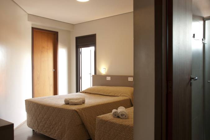 Família que viaja junto permanece junto em quartos conjugados que acomodam com conforto até 4 pessoas. O ar condicionado é individual para cada ambiente (cada quarto).